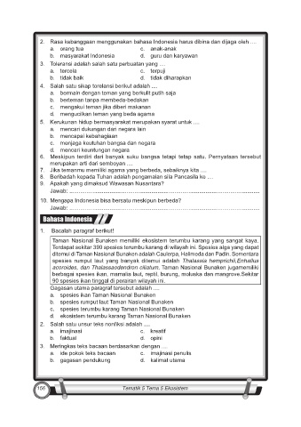 2. Rasa kebanggaan menggunakan bahasa Indonesia harus dibina dan dijaga oleh ....