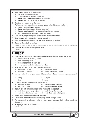 1. Kegiatan manusia yang mengakibatkan ketidakseimbangan ekosistem adalah ….