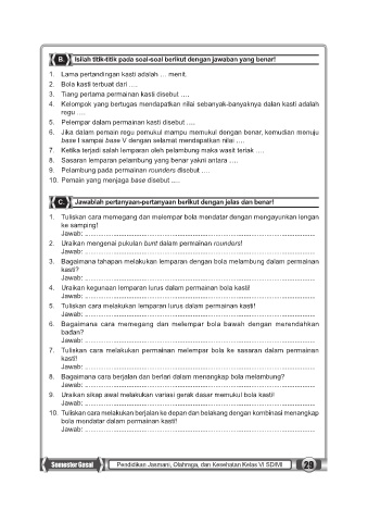 Semester Gasal Pendidikan Jasmani, Olahraga, dan Kesehatan Kelas VI SD/MI 29