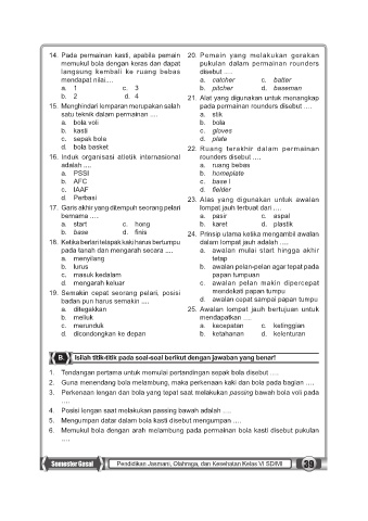14. Pada permainan kasti, apabila pemain 20. Pemain yang melakukan gerakan