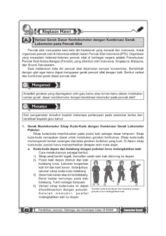42 Pendidikan Jasmani, Olahraga, dan Kesehatan Kelas VI SD/MI Semester Gasal