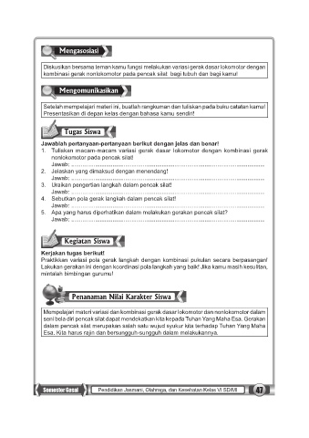 Semester Gasal Pendidikan Jasmani, Olahraga, dan Kesehatan Kelas VI SD/MI 47