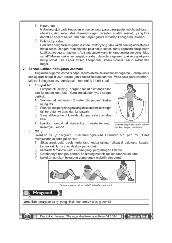 54 Pendidikan Jasmani, Olahraga, dan Kesehatan Kelas VI SD/MI Semester Gasal