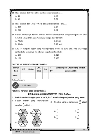 33. Hasil taksiran dari 4.773 : 196 ke ratusan terdekat kira –kira ….