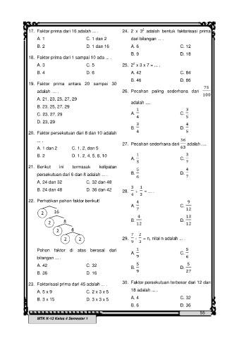 17. Faktor prima dari 16 adalah ... . 24. 2 x 3 adalah bentuk faktorisasi prima