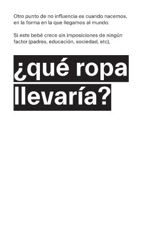 Otro punto de no influencia es cuando nacemos, en la forma en la que llegamos al mundo. Si este bebé crece sin imposiciones de ningún factor (padres, educación, sociedad, etc), ¿qué ropa llevaría?