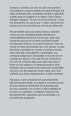 la ropa y en general, no dejarse llevar por los
