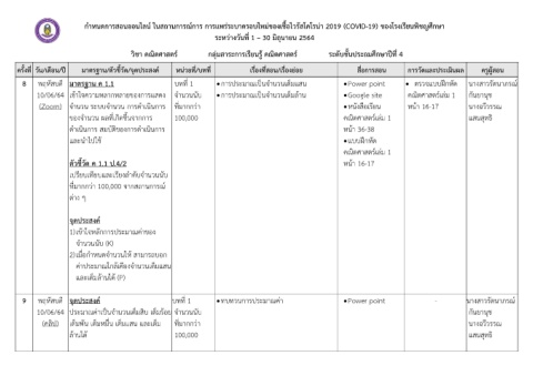 ครั้งที่ วัน/เดอน/ป มาตรฐาน/ตัวชี้วัด/จุดประสงค หนวยที่/บทที่ เรื่องที่สอน/เรื่องยอย สือการสอน การวัดและประเมนผล ครูผูสอน