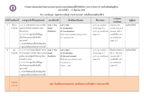 2 พุธ อ 1.1 ป. 4/2 อานออกเสียงคํา สะกด Unit 1 The Let’s learn - Let’s go student - ฝกแตงประโยคจาก ครูชรินทรทิพย