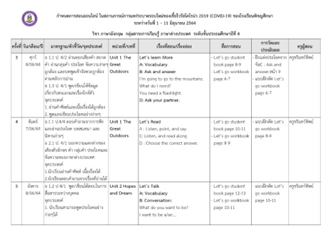 5 อังคาร อ 1.2 ป 4/1 พูด/เขียนโตตอบในการ Unit 2 Hopes Let’s Talk - Let’s go student - แบบฝกหัด Let’s ครูชรินทรทิพย