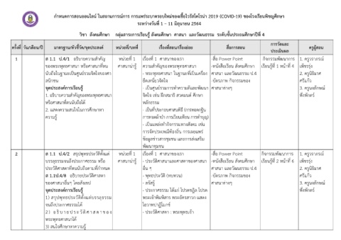 กาหนดการสอนออนไลน ในสถานการณการ การแพรระบาดรอบใหมของเชอไวรสโคโรนา 2019 (COVID-19) ของโรงเรยนพชญศกษา