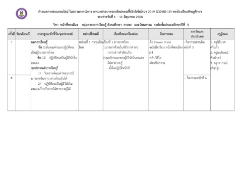 กาหนดการสอนออนไลน ในสถานการณการ การแพรระบาดรอบใหมของเชอไวรสโคโรนา 2019 (COVID-19) ของโรงเรยนพชญศกษา