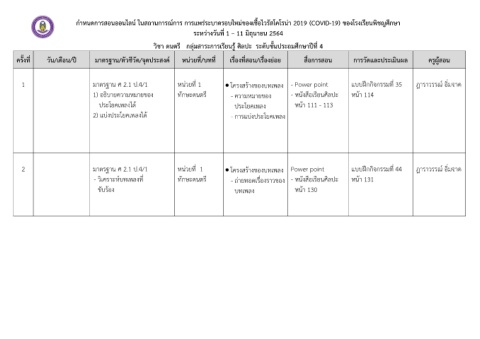 กาหนดการสอนออนไลน ในสถานการณการ การแพรระบาดรอบใหมของเชอไวรสโคโรนา 2019 (COVID-19) ของโรงเรยนพชญศกษา