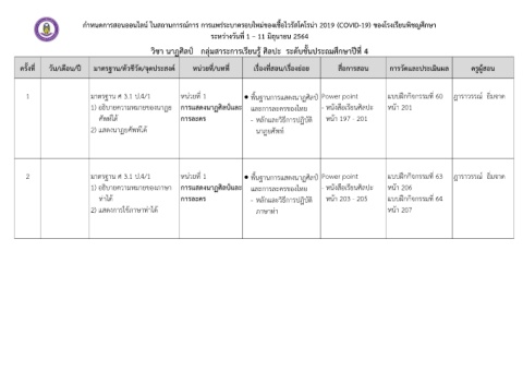 กาหนดการสอนออนไลน ในสถานการณการ การแพรระบาดรอบใหมของเชอไวรสโคโรนา 2019 (COVID-19) ของโรงเรยนพชญศกษา