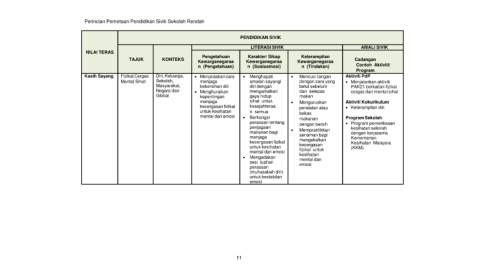 Perincian Pemetaan Pendidikan Sivik Sekolah Rendah
