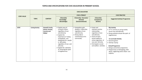 TOPICS AND SPECIFICATIONS FOR CIVIC EDUCATION IN PRIMARY SCHOOL