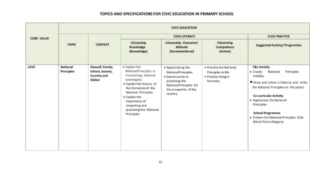 TOPICS AND SPECIFICATIONS FOR CIVIC EDUCATION IN PRIMARY SCHOOL