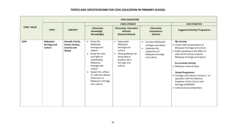 TOPICS AND SPECIFICATIONS FOR CIVIC EDUCATION IN PRIMARY SCHOOL