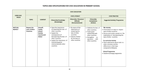 TOPICS AND SPECIFICATIONS FOR CIVIC EDUCATION IN PRIMARY SCHOOL