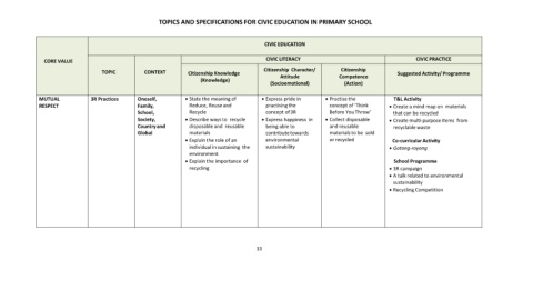 TOPICS AND SPECIFICATIONS FOR CIVIC EDUCATION IN PRIMARY SCHOOL