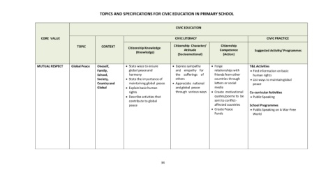 TOPICS AND SPECIFICATIONS FOR CIVIC EDUCATION IN PRIMARY SCHOOL