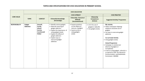 TOPICS AND SPECIFICATIONS FOR CIVIC EDUCATION IN PRIMARY SCHOOL