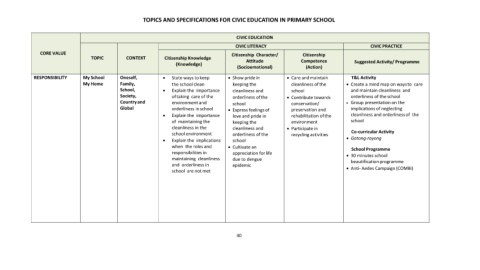 TOPICS AND SPECIFICATIONS FOR CIVIC EDUCATION IN PRIMARY SCHOOL