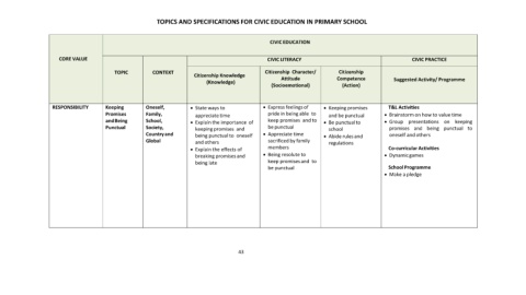 TOPICS AND SPECIFICATIONS FOR CIVIC EDUCATION IN PRIMARY SCHOOL