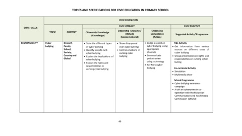 TOPICS AND SPECIFICATIONS FOR CIVIC EDUCATION IN PRIMARY SCHOOL