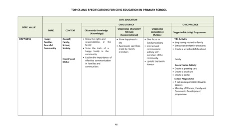 TOPICS AND SPECIFICATIONS FOR CIVIC EDUCATION IN PRIMARY SCHOOL