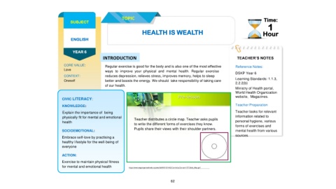 physically fit for mental and emotional Teacher distributes a circle map. Teacher asks pupils information related to
