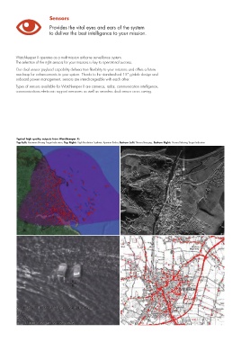 Top Left: Maritime Moving Target Indication, Top Right: High Resolution Synthetic Aperture Radar, Bottom Left: Thermal Imaging, Bottom Right: Ground Moving Target Indication