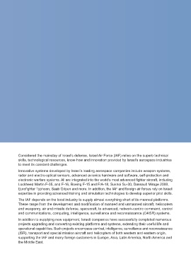 skills, technological resources, know-how and innovation provided by Israel’s aerospace industries