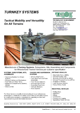 • Fuel Tanks and Water Tanks • Track Tension Adjusters • Amphibious Vehicles