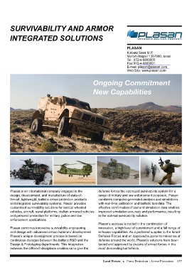 and integrated survivability systems. Plasan provides with real-time calibration and ballistic test data. The