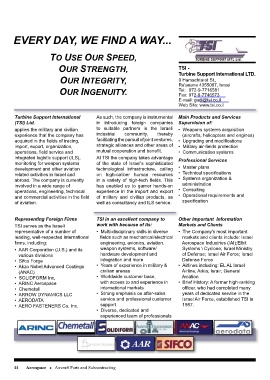 • ARROW DYNAMICS LLC • Strong emphasis on after-sales Israel Air Force, established TSI in