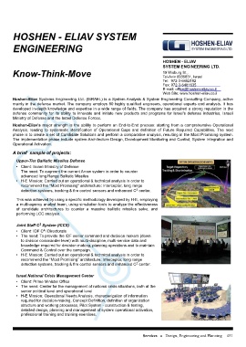 Hoshen-Eiiav Systems Engineering Ltd. (ISRAEL) is a System Analysis & System Engineering Consulting Company, active