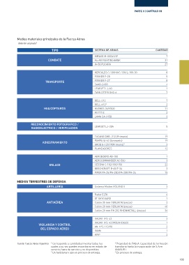 Medios materiales principales de la Fuerza Aérea SISTEMA DE ARMAS CANTIDAD