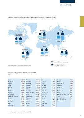 Recursos hídricos renovables y distribución de población por continente (2014)