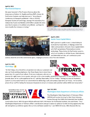 provide clean air for a safe experience for all," said Ray Blanchette, CEO for Fridays. "Rolling out new air treatment