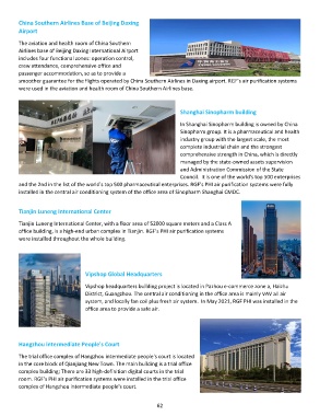 smoother guarantee for the flights operated by China Southern Airlines in Daxing airport. RGF’s air purification systems