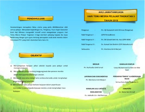 semua pelajar. Menyedari kepentingan itu, Pengetua, Puan Hajah Kamariah Pengerusi : Pn. Hjh Kamariah binti Othman (Pengetua)