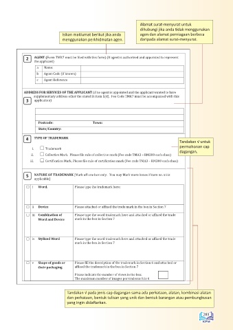 Tandakan √ pada jenis cap dagangan sama ada perkataan, alatan, kombinasi alatan