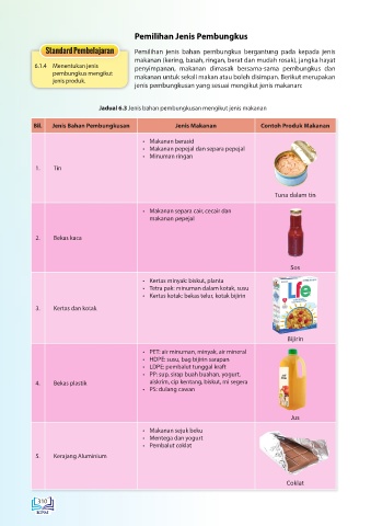 Jadual 6.3 Jenis bahan pembungkusan mengikut jenis makanan