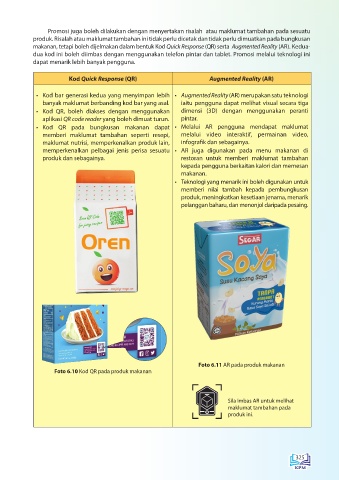 makanan, tetapi boleh dijelmakan dalam bentuk Kod Quick Response (QR) serta Augmented Reality (AR). Kedua-