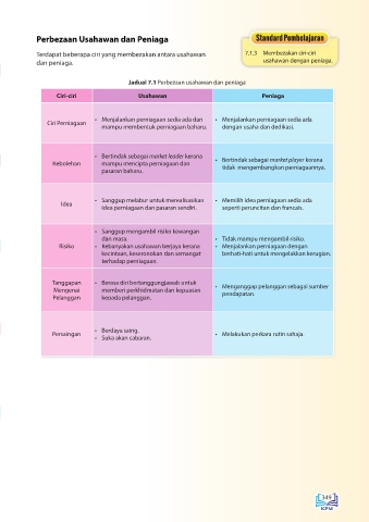 Jadual 7.1 Perbezaan usahawan dan peniaga