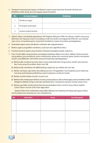 2. Terdapat empat jenis perniagaan di Malaysia seperti yang tersenarai di bawah. Berikan satu