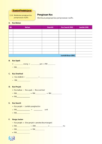 3.3.8  Melakukan pengiraan kos   Pengiraan Kos