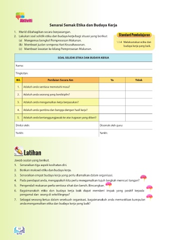 2. Lakukan soal selidik etika dan budaya kerja bagi situasi yang berikut:
