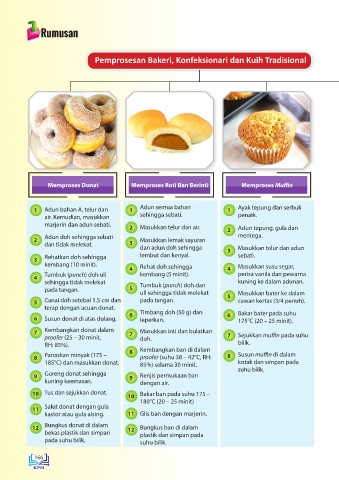 6 Timbang doh (50 g) dan 6 Bakar bater pada suhu